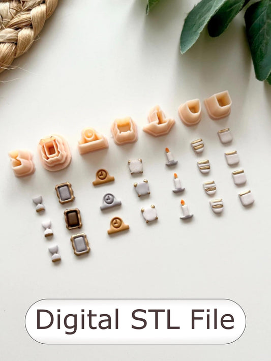 Bookshelf Decorations #1 Polymer Clay Cutter - Digital STL File - 7 Designs